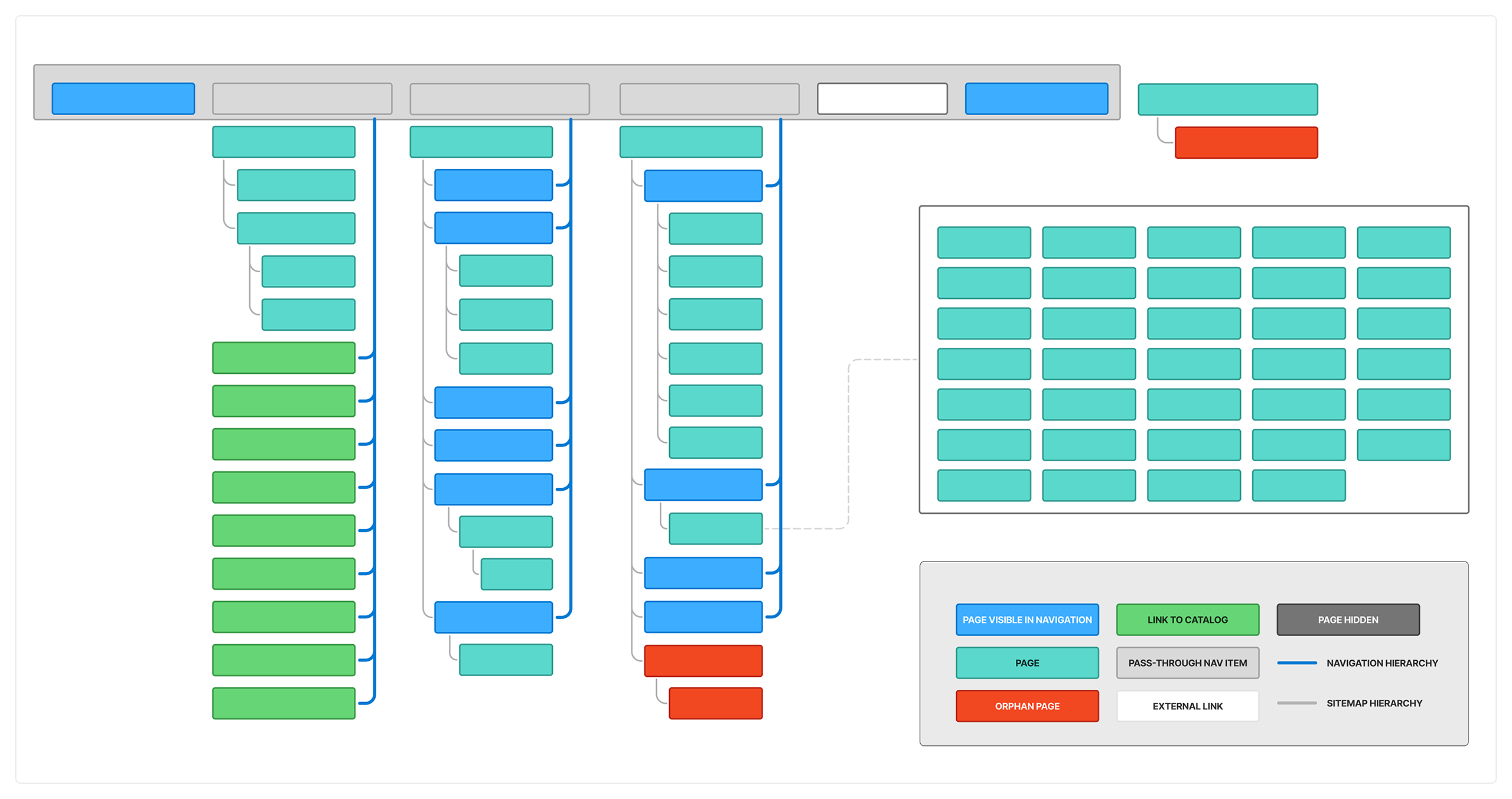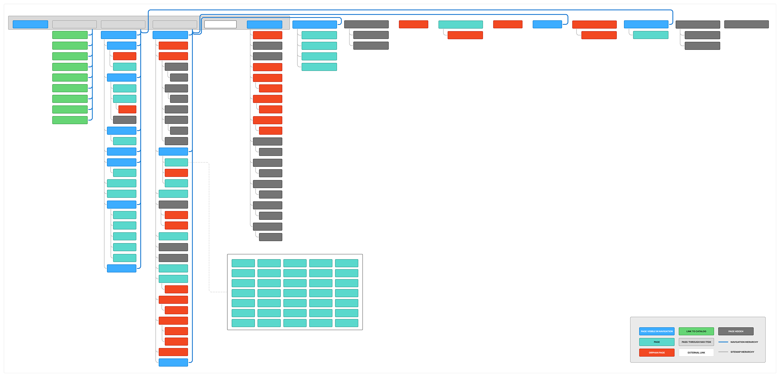 When I completed the initial sitemap inventory, we discovered 98 total pages excluding dynamically generated blog posts and links to catalog pages. Of those 98: